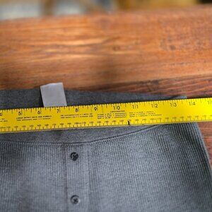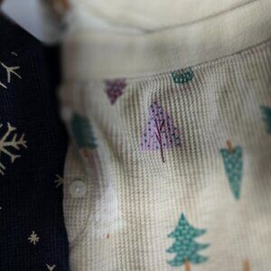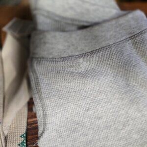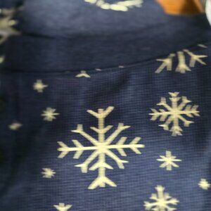 Lot of Four (4) Old Navy Thermal Long John Pajama bottoms Women's size M. One solid light grey, one grey with cream floral, one beige with trees, and one dark blue with snowflakes. All are 57% Cotton, 37%Polyester,6% Elastane blend with two faux fly buttons and elastic waist. Measured, lying flat approximately 14" across waist, easily stretched to 17", and 26" inseam. Price is for all four pair. All in good used condition without holes, stains or tears.