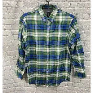 Lands' End Mens Flannel Shirt Traditional Fit 2XL Tall 18-18 1/2 NEW Green Blue