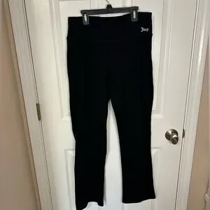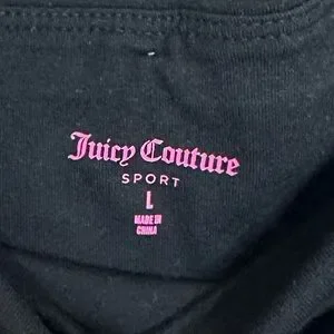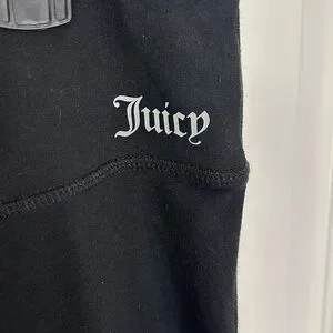 These are black sport leggings from Juicy Couture, featuring a sleek design suitable for athletic and casual wear. The fabric is stretchy and comfortable, ideal for workouts or everyday use. Get your Y2K aesthetic on.