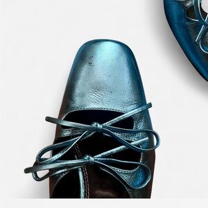 Nicole Saldana blue metallic ballet heels 🩰