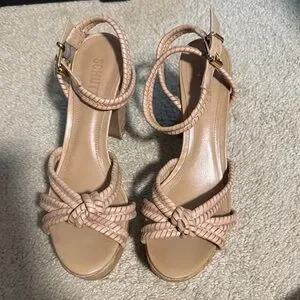 Crafted from quality leather, the Kareena features a knot curated from its braided front straps, an elevated platform, and a high-block heel, that'll take your bell bottoms and oversized blazer outfits to another level.