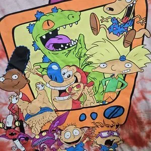 Nickelodeon 90's Rugrats Arnold Stimpy T-Shirt 3XL Cartoon Red Tie Dye