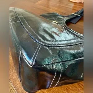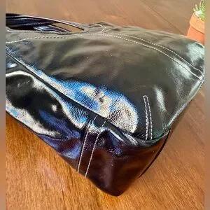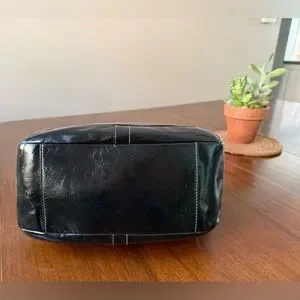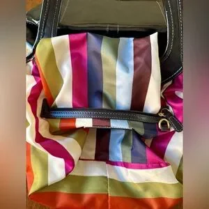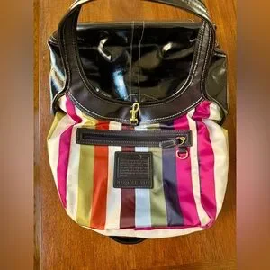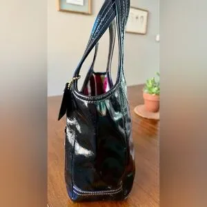 This limited edition bag made in celebration of Coach's 65th Anniversary is in beautiful condition. Gorgeous patented calf leather; bright striped interior. Minimal to no signs of use.