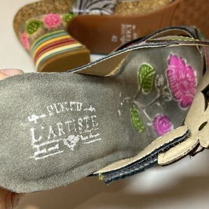 The L'Artiste by Spring Step Women's Rossie-Grym Leather Heeled Sandals in EU size 40 (US size 9.5) are a stylish and versatile option for any woman's wardrobe. With a floral pattern and multicolor design, these slip-on sandals feature a block heel and strappy style, making them perfect for both casual and party occasions. Made of high-quality leather, these sandals are suitable for the summer, fall, and spring seasons, adding a touch of flair to any outfit. The Spring Step brand is known for its comfort and durability, ensuring that these sandals will be a staple in your shoe collection for years to come.
