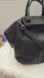 Chic black leather tote by Alexander Wang. Features gold corner accents. Spacious interior with sturdy handles and a detachable strap.