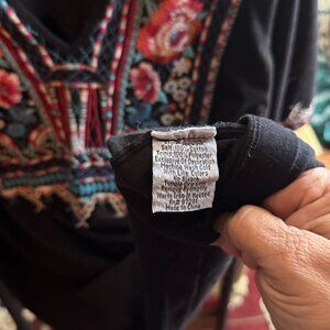 Black soft 100% cotton short sleeve tunic, beautiful embroidery on front of tunic