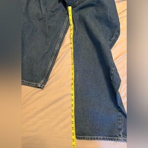 Inspired by vintage workwear from the 30s and 40s, these have zero stretch to the organic cotton denim. The drawstring waist allows for a fair amount of adjustment and the jeans are listed as oversized fit so check the measurements. My denim size is typically a 28 or 29 and these fit me, but the rise is too high for me. Washed cold sparingly with unscented detergent and line dried. Listing as “RJ 2 size”