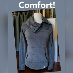 Stylish gray top with unique collar design. Long sleeves. Perfect for casual wear.
