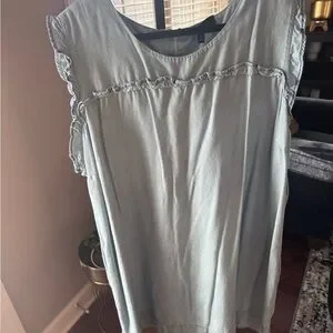 Chic and stylish chambray dress with ruffle details. Soft fabric for all-day comfort. Ideal for casual outings.