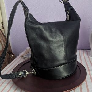 Chic black leather hobo bag by Tano. Soft texture with a stylish design. Perfect for everyday use. some sins the used