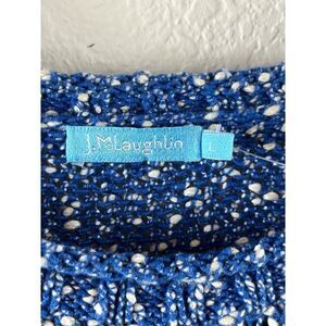 J. McLaughlin Textured Marled Split Hem Pullover Crewneck Sweater Large Blue