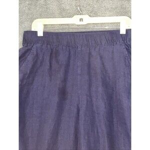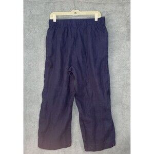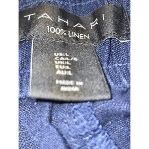 Tahari Womens Wide Leg Linen Pants Size Large Blue Cropped Beach Costal Travel