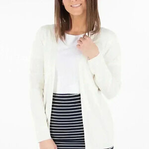 Molly Bracken lightweight open front mid length black lace trim cardigan M