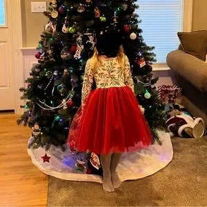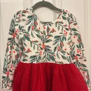 Charming dress with a vibrant red tulle skirt and a whimsical holly patterned top. Ideal for holiday celebrations. Girls size 6. Excellent condition, worn one time. This was purchased from Etsy so there are no tags inside but I have included the image of my purchase in the pictures to verify the size.