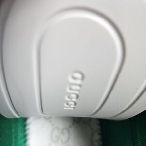 The low-top sneaker is presented in Black GG canvas. The style combines different elements from the House's heritage such as the Gucci Tennis 1977 label, a textured GG motif at the sole and the Web—details which recall the House's connection to the world of sports and leisure.