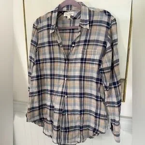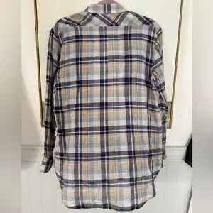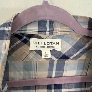 NILI LOTAN Lydia Plaid Shirt Buttondown Collar Brown Blue Tan Size L