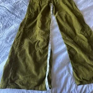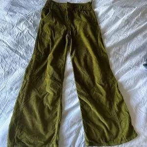 Stylish olive green corduroy pants with a wide-leg design. Perfect for casual wear.