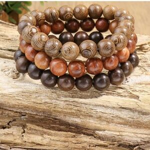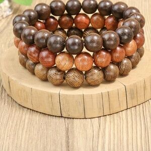 TopHanqi 3pcs Vintage Style Multi-color Wooden Beaded Elastic Stretch Bracelet Set For Men And Women