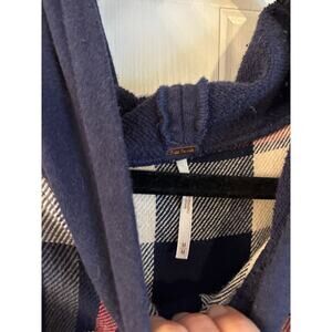Free People Maddox Patched Plaid Tunic Womens Oversized Varsity Shirt W/ Hood M