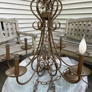 Elegant classic metal chandelier with intricate design. Perfect for adding a vintage touch to any room.