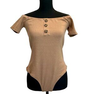 Streetwear Society tan brown ribbed short sleeve off the shoulder bodysuit Sz L