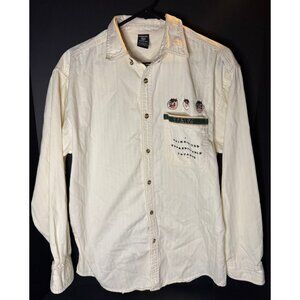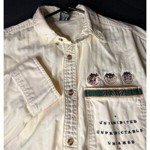 Vtg Taz Tasmanian Devil Warner Bros Embroidered Chest Pocket Button Shirt Mens M
