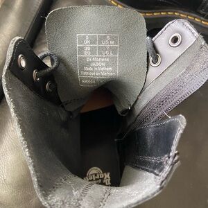Classic Dr. Martens Jadon boots in sleek black. Durable lace-up design. Smooth Leather Platform Boots