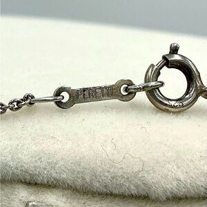 This Tiffany & Co silver “bean” necklace adds a touch of sophistication to any outfit. Perfect for any occasion.