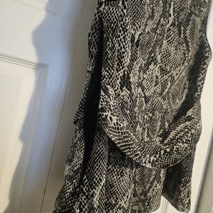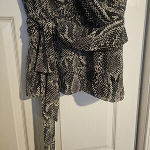 Express Black Surplice Front Tie Waist Snakeskin Print Chiffon Blouse