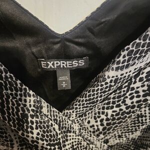 Elevate your style with the Express Women's Black Snakeskin Print Top. This chic top features a sophisticated wrap design, perfect for any occasion.