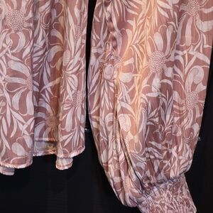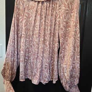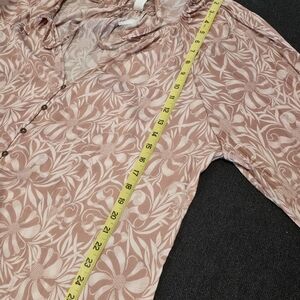 Chic blouse with a leaf pattern. Features button-down front and gathered sleeves. Ideal for stylish outings.