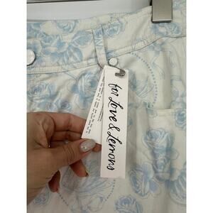 Indulge in the chic elegance of the Chantal Denim Midi Skirt by For Love & Lemons. The blue and white print and feminine cottagecore accents create a timeless and sophisticated look. Effortlessly elevate your style with this luxurious addition to your wardrobe.