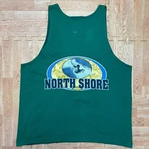 VTG Wilson North Shore Hawaii Surfing Tank Top Large Green Sleeveless Shirt RARE