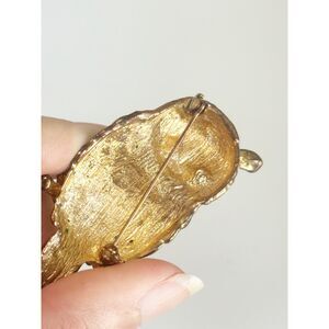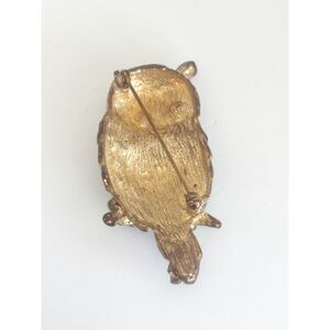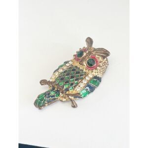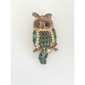 Vintage Owl Brooch Green and Navy Harlequin Pattern Enamel