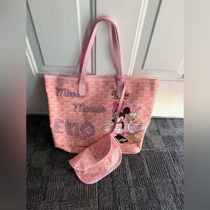 EMO Minnie Mouse Pink Tote Bag Made in Korea w/ Matching Pouch-New Without Tags