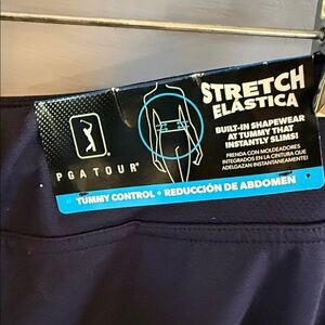 Navy skort with stretch fabric. Features tummy control. Ideal for active wear.