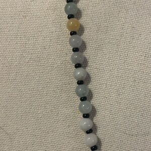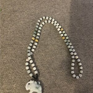 Elephants are considered a symbol of wisdom, strength, and good fortune in many cultures. In Hinduism, the elephant-headed deity Ganesha is known as the remover of obstacles, while in Buddhism, the white elephant symbolizes mental strength and spiritual enlightenment. In other traditions, elephants are associated with loyalty and family bonds. This jade beaded necklace features a stunning combination of white, green, and yellow beads. Perfect for adding a touch of sophistication to any outfit. Pendant size .7” Bead size 6mm. Necklace length 12” Natural Jade