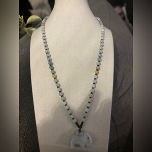 Jade Beaded Necklace with Jade Elephant Carved Pendant