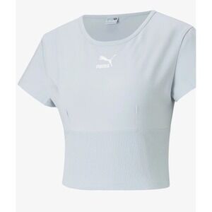 Puma Women's Classic Structured Crop Basic T-shirt Blue Size M