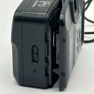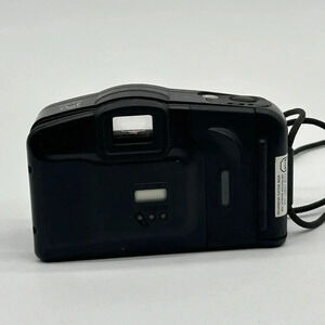 This Canon Sure Shot film camera is a great choice for anyone who wants a simple, user-friendly option for capturing memories. With its point and shoot design, you can easily snap a photo without having to worry about complicated settings. The camera is in excellent working order and comes with a 1:4.5 lens, making it perfect for capturing sharp and clear images. The black color gives it a sleek and stylish look, and the auto focus feature ensures that your shots will always be sharp. This camera is ideal for anyone who wants to capture memories without the hassle of a complicated camera.* the hinge doesn’t close***. Will work by taping back housing shut**