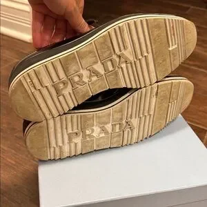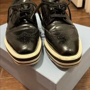 💯 Authentic Prada Black and White Leather Platform Loafers size 37.5. I’m normally a 38 in Prada but these run true to size 7.5. Good used condition. Will come with original box no dust bags.