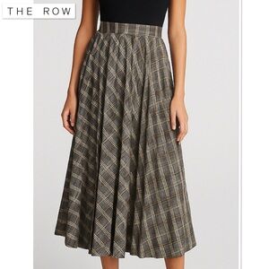 Elevated minimalism at its finest. This authentic The Row plaid A-line midi skirt features a structured high waist and full pleated silhouette that drapes effortlessly — delivering that signature quiet luxury / refined simplicity the brand is known for.