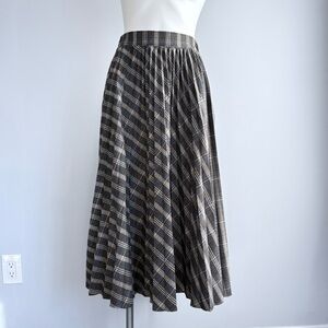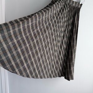 The Row Plaid Wool A-Line Midi Skirt – XS/S Fit – High Waist Pleated Quiet Luxury Academia