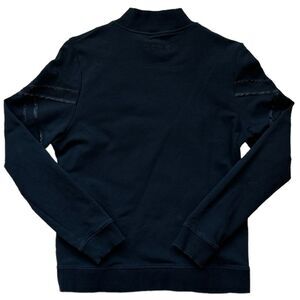 This cute black zip-up track jacket is comfortable and stylish. It has some signs of wear, including the zipper pulls (see last photo), but no flaws. It fits more like juniors sizing. Approximate measurements lying flat: pit to pit 18.5”, total length 23.5“. Let me know if you have any questions! Please note that I reuse shipping materials whenever possible ♻️