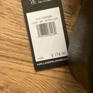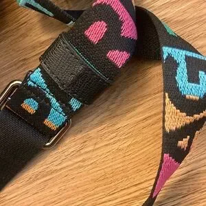 NWT still stuffed with factory packing. Comes with a pouch. 2 sections zip closure. 3 card slots in one side under the name tag and a slit pocket on the other side. Guitar Strap