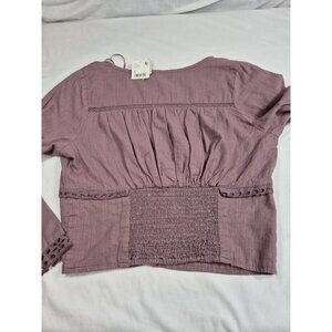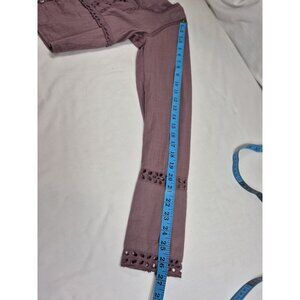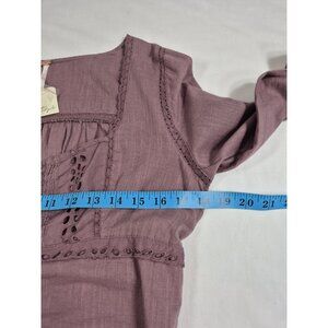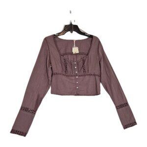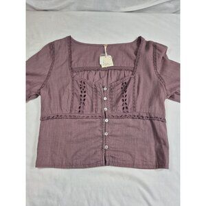 Free People Blouse Size S Eyelet Lace Crop Top Purple Mauve Roan Rouge (13)