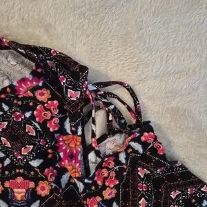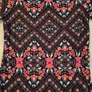 Stylish womens dress with a bold geometric and floral design. Ideal for casual outings.