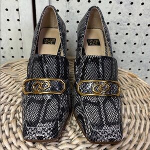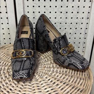 OLISA navy and cream snake skin print 4 inch chunky heel loafer in great condition!❤️❤️❤️❤️