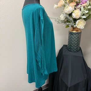 New Direction Woman 1X Teal Embellished Jewel Neckline Long Sleeve Holiday Top