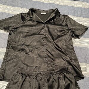 Black Satin Pajama Set